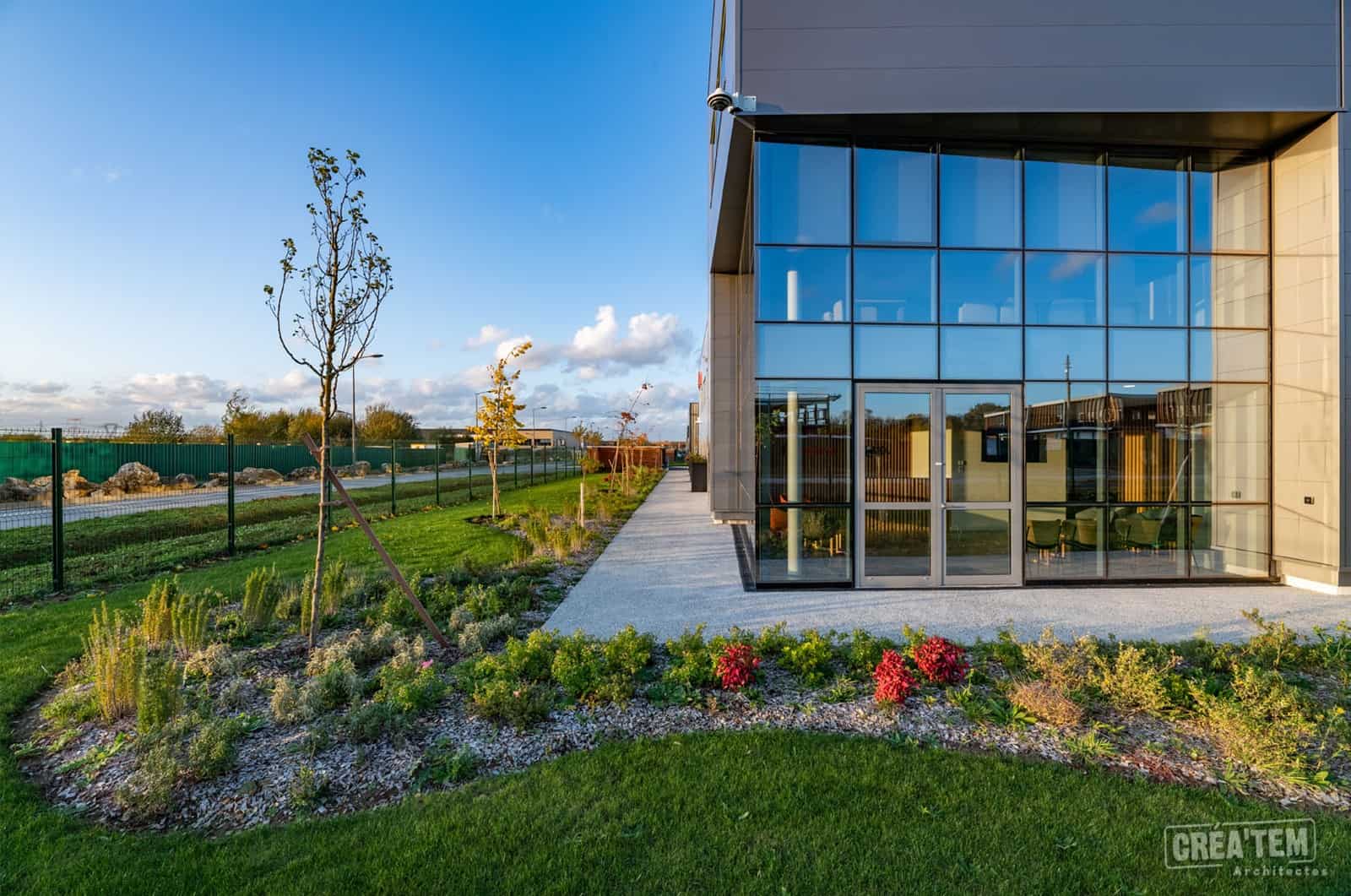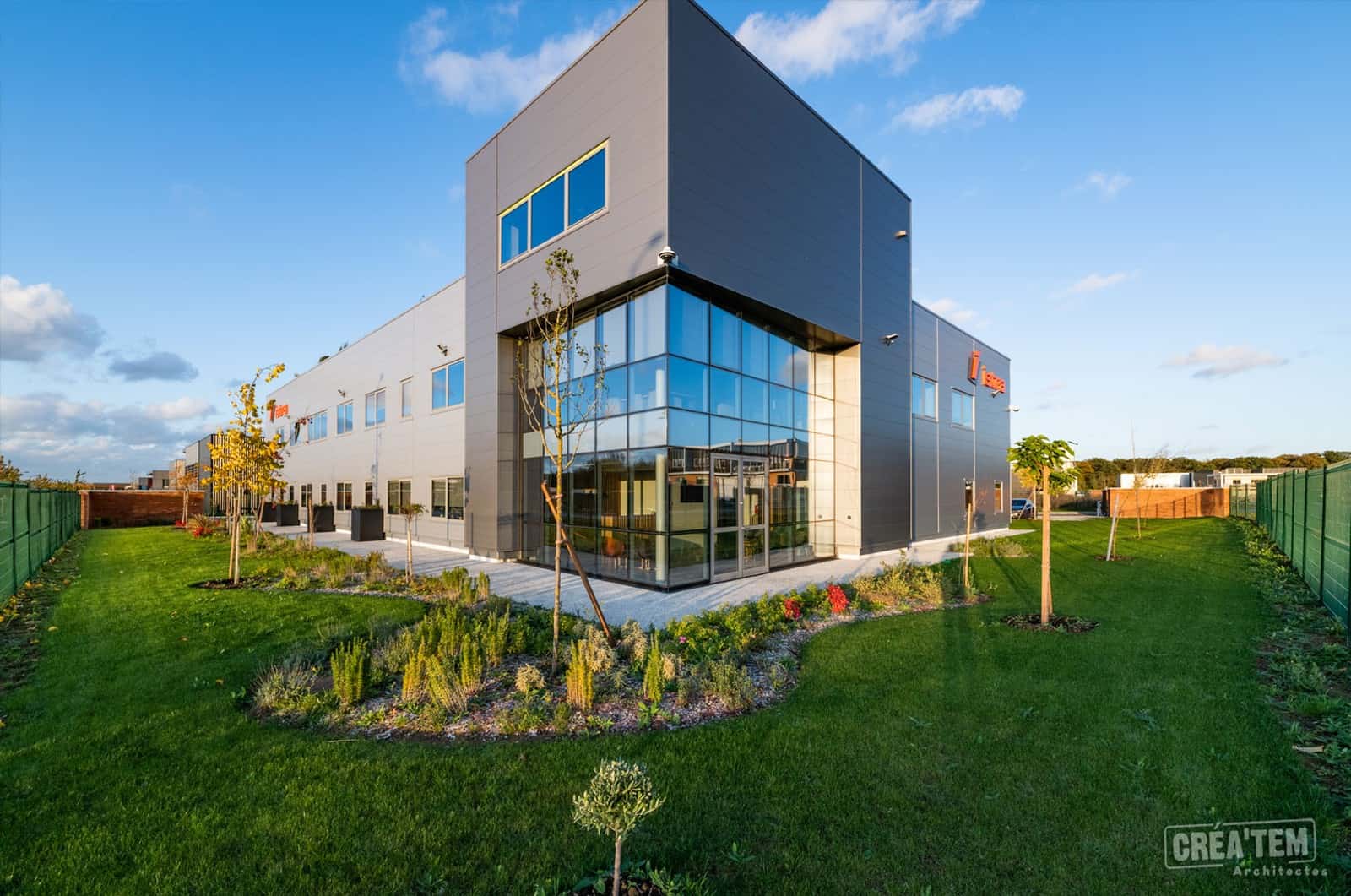 La dissociation des bureaux et de l’entrepôt est matérialisée par ces différences de bardages.